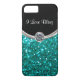 Stylish glitter smartphone case with pretty printed turquoise simulated sparkling glitter, diamond jewel bling and silver accents, all digitally printed on the cellphone cover to give your mobile phone some glitz and glam in a styled way. Designed for ladies or girls who want a fancy cover without the fancy cost.
