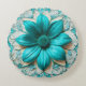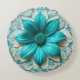 Elevate your space with this round throw pillow featuring a hyperrealistic turquoise flower in full view, surrounded by smaller delicate blossoms. The 2D pen-drawn clipart illustration on a crisp white background offers a perfect balance of simplicity and intricate beauty, making it a captivating accent piece for any room. Perfect for those who appreciate art-themed floral designs. #jeetscollections