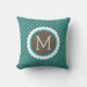 Turquoise Blue and Brown Stripes Pattern Monogram Cushion