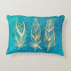 Turquoise Blue and Gold Feathers Decorative Cushion