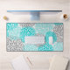 Turquoise Blue and Gray Dahlia Floral Desk Mat
