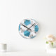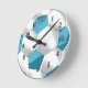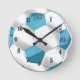 Turquoise Blue and White Soccer Ball Round Clock