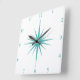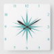 Turquoise Blue Atomic Starburst Numbers Midcentury Square Wall Clock
