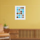 © Christina Katson- My original abstract modern art, vector art & design. A colorful contemporary abstract poster print with a geometric abstract pattern of light blue, turquoise blue and chocolate brown circles/dots. It has sort of a retro modern style. This abstract poster would look great in many different types of interiors or rooms: a modern or contemporary home, a kid's room or even your office. Nice clean, graphic, modern design.