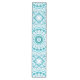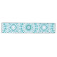 Bring vibrant, calming energy into your home with this eye-catching table runner. The design features an intricate mandala pattern with a mesmerising radial symmetry in shades of turquoise and teal against a white background. The mandala design is made up of delicate floral motifs and flowing lines that radiate outward like petals, creating a sense of depth and motion.