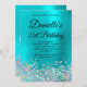 The background features a girly glam vivid turquoise blue ombre brushed metal style foil digital art graphic.