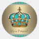 Turquoise Blue Gold Prince Baby Shower Stickers
