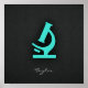Cool, sleek, Turquoise; Blue Green microscope, microscopy clip art on black and dark grey textured background. Great gift for research scientists or anyone that loves science! Add your name or text to personalise it! Images used on this item are licensed and © Graphics Factory.com