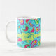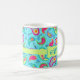 Enjoy this stylish mug made with a colourful whimsy paisley design personalised with your monogram, initials or name. The stylish colours of this trendy paisley design features a turquoise blue background with a lime green strip and emblem for personalisation. Bright, fresh, modern paisleys make a beautiful artistic design that includes inspirational words of Love, Hope, Faith, Inspire, Cherish, Be Happy, Dream, and Live in the background between the paisleys. This Mod Paisley collection, designed by Phyllis Dobbs, uses the colours of teal, turquoise, lime green, wine, yellow, fuchsia and orange to create a fun and whimsey take on the traditional and popular paisley motif. The paisley motif is timeless in appeal but this original art is both trendy and contemporary. Fully customisable for personalisation with your own words to add your own message.