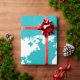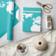 turquoise blue map wrapping paper