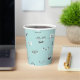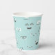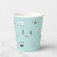 Silly monster faces surround this paper party cup. Turquoise background and black and white monster faces. Coordinates with "Our Little Monster" Birthday Collection.