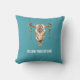 Turquoise Blue Native Tribal Bull Horns Skull Cushion