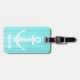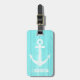 Turquoise blue nautical anchor travel luggage tag. Personalised label for bags and suiotcases. Weathered boat / ship anchor with vintage typography. Stylish maritime gift idea for men and women. Customisable name.