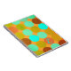 Modern circle pattern with turquoise blue greens, oranges and rust colours.
