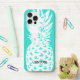 Turquoise blue pineapple image iPhone 12 pro Case. Create your own beautiful phone cover. Unique Birthday gift idea for friends and family. Zazzle Basic Value phone covers for men, women and kids. Also available for older models and Samsung. Vintage design with custom background colour. Add your own monogrammed name initial letter.