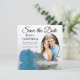 Turquoise Blue Rose on White Oval Photo Wedding Save The Date