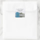 These wedding return address envelope seals feature a unique square shape designed to show off the beautiful artwork, which features a single long stemmed sky blue, turquoise, or azure coloured rose lying on its side reflecting in a pool of water with ripples and waves. The lettering is done in elegant script calligraphy. Beautiful way to add class and style to your wedding mailings.