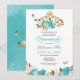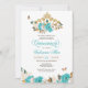 Turquoise Blue Roses Golden Tiara Butterfly Quince Invitation