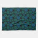 Turquoise blue round mandala on black background tea towel