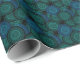 Turquoise blue round mandala on black background wrapping paper