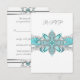 Beautiful teal turquoise blue and silver turquoise Quinceanera RSVP.. This elegant teal blue Quinceanera birthday party RSVP can be easily customised for your party or event. Add your details to the front and/or back by adding your event details, font style, font size & colour, and wording. Please note - all of the invitation designs you will find on Zazzle are printed graphics on flat paper stock with no actual jewels, bows, raised, embossed, or added parts or pieces.
