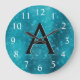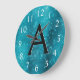 Turquoise Blue Sparkle Monogram Name & Initial Large Clock