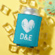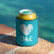 Turquoise blue and white wedding can cooler with cute heart. Vintage design monogrammed with name initial letters of bride and groom. Weathered love symbol with date of marriage on back side. Make your own wedding favour / souvenir for guests at your party. Romantic theme beverage holder design. Perfect for alcoholic drinks like beer. Also available for bottles. Change the quantity to get the cheapest price per cooler.