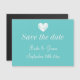 Turquoise blue wedding magnetic save the date card . Easy to hang on fridge. Beautiful vintage love icon. Elegant design template for reminding guests of your special day.