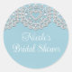 Turquoise Blue White Lace Heart Wedding Bridal Classic Round Sticker