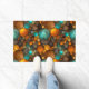 Turquoise Brown Abstract Fractal Pattern Doormat