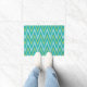 A vibrant turquoise and lime pattern decorates this stylish doormat. The design is from original art.