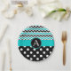 Monogram design with turquoise, black and white chevron pattern and black and white polka dots. Resizable circle frame for custom initial or remove it completely and add text to the turquoise stripe! PinkInkArt original!