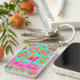 Original quilt art combines favourite quilt blocks plus unique blocks to form a quilt design with vibrant and dynamic colours on a turquoise blue background. Your keychain can be personalised with your name, business name or other words of your choice on a pink strip. If you don't want to personalise, you can remove the colour strip and text. This keychain is a great way to show off your love of quilting. This makes a great gift for a quilter or quilt lover. Fully customisable and personalizable. More products for businesses with this quilt art are available in Phyllis' Zazzle BusinessWithFlair store.