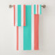 Turquoise Coral White Stripes Bath Towel Set