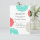 Turquoise Coral Zinnia Flower Wedding RSVP