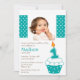 Start your party off right with our cute Turquoise cupcake with a big number one birthday candle Photo Birthday Invitation. So cute and perfect for you daughters first birthday party. Just personalise with your information and your photo and you're all set to go! Matching items including birthday postage stamps, favour stickers, thank you cards & thank you stickers are also available in our shop. ©Goodness & Fun