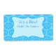 It's a Boy! Use this stylish turquoise blue damask name tag label for the guests at a baby shower to introduce themselves. Sophisticated and whimsy, this name features a turquoise blue damask on a layered light blue background that is very trendy. A light blue motif provides an area to for the guests to write their name. The words "It's A Boy" and "hello my name is" can be changed to other words for other uses for this label. Fully customisable for your shower party. This damask pattern is original art by Phyllis Dobbs and coordinates with other products in this store.