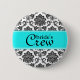 Turquoise Damask Bride's Crew Button