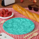 Turquoise damask print paper plate