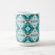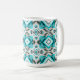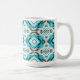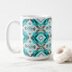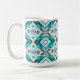 This design features a geometric pattern with a repeating diamond shapes motif with blurred, feathered edges radiating outward. The overall effect combines symmetry, energy, and depth — a balance of tribal feel and modern geometry in turquoise, grey and cream.