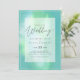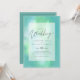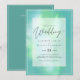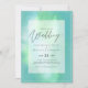 Modern wedding invitation featuring text template fields on both sides and a cloud of greeny blue colour.