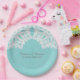 Simple and sophisticated Elegant Lace Wedding Paper Plates featuring a white lace doily motif on a light turquoise faux vintage paper background. These classic and stylish plates are perfect for a rustic wedding. Easy to customise with your wedding details. Click "Customise It" to find more personalisation options.