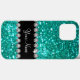 Replace the name drop with any girls name or monogram initials on this glitzy bling smartphone case created with digitally printed turquoise sparkling glitter art and digital rhinestone jewels printed girly style. Carry your mobile phone in a style that screams with bling.
