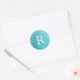 Turquoise faux leather background with serif font monogram and encircled information on the top in same font. Check our store for more items from this collection for a complete branding experience.