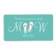 Custom turquoise blue and white flip flops wedding water bottle labels. Personalised elegant waterbottle sticker template with beach flipflops / slippers design. Stylish script typography for names of bride and groom plus thank you message. Use as classy table decoration or thank you favour for guests at the wedding / bridal party. Logo includes name or monogram plus date of marriage. Classy design with customisable background colour. Perfect for tropical beach destination weddings. Also great as wine label. Thank you for joining our special day. Seaside Maritime summer theme.