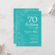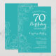 Turquoise Floral 70th Birthday Party Invitation. Minimalist modern design featuring botanical outline drawings accents and typography script font. Simple trendy invite card perfect for a stylish female bday celebration. Can be customised to any age. Printed Zazzle invitations or instant download digital printable template.