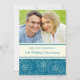 Photo 25th wedding anniversary party invitation card in elegant teal peacock blue and off white floral pattern, delicate and formal. Customisable with your party details and your own photo.