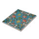 Roses bordering a turquoise background filled with flowers and golden leaves