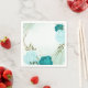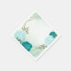 Beautiful wedding paper napkin featuring turquoise and light blue flowers and green leaves