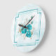 Turquoise Flowers Wall Clock